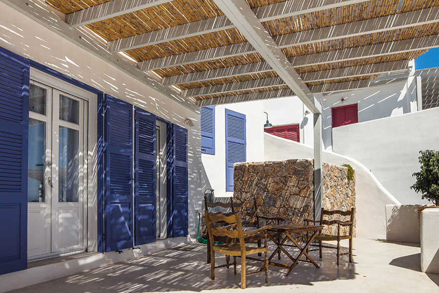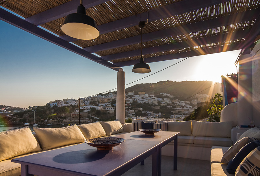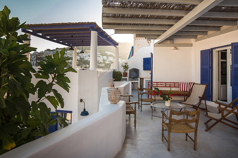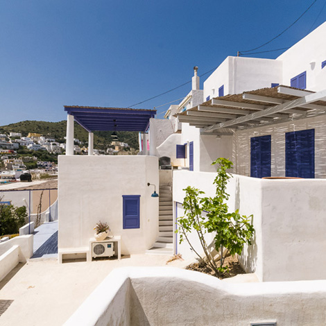 This is a house with two studios in a complex of two residences. You can see the other house of the complex here. The main part is the owners' residence and the studios are for guests. The whole complex is built in a plot of land of 1.000 m2, with a breathtaking view overlooking the Pandeli bay, as well the open sea and other islands.