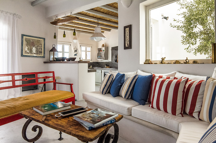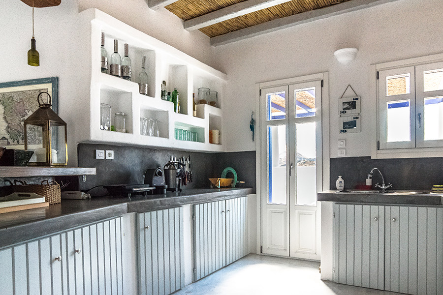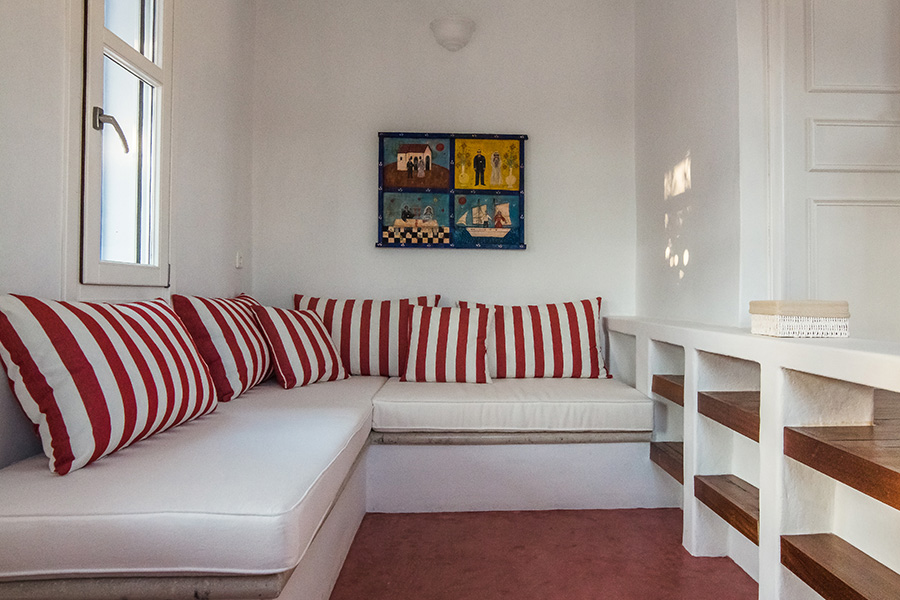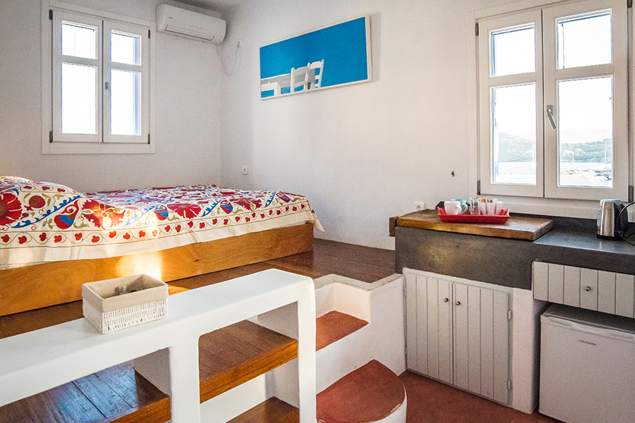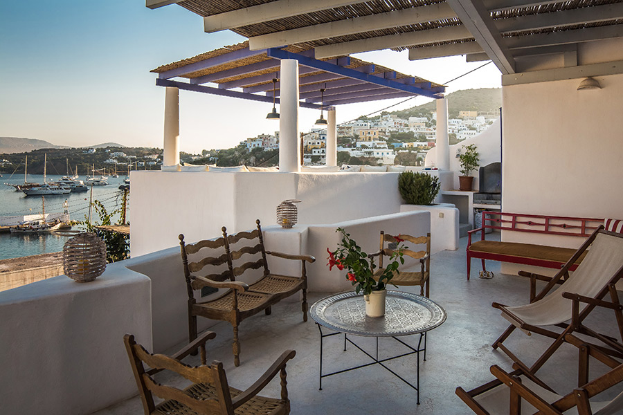 This is a house with two studios in a complex of two residences. You can see the other house of the complex here. The main part is the owners' residence and the studios are for guests. The whole complex is built in a plot of land of 1.000 m2, with a breathtaking view overlooking the Pandeli bay, as well the open sea and other islands.