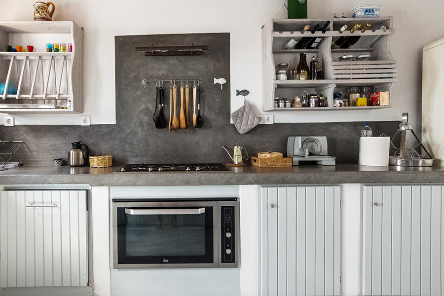 It was built in 2012-2013 on the upper part of a plot with on a steep slope, following land's configuration and creating in this way a lot o different levels, terasses, stairs and many privat corners. The main house consists in two bedrooms with on suite bathroom, kitchen, open plan living and dining room, a big veranda and a big open space dining terrace with a breathtaking view. There are two studios for guests with on suite bathroom and a small kitchenette, as well a garage with storage space. The whole complex is also rented for visitors when the owners are away.